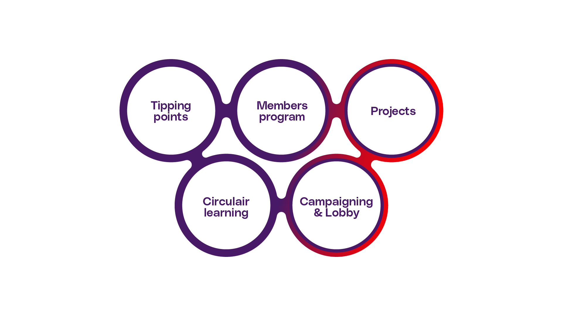 Circular Friesland operates through five common grounds for its members: Association Program, Tipping Points, Circular Learning, Projects, and Campaigning & Lobbying. These elements collectively support the organization’s mission to drive the circular transition in Friesland. A more elaborate explanation of the regional transition program can be found in Friesland in Action.